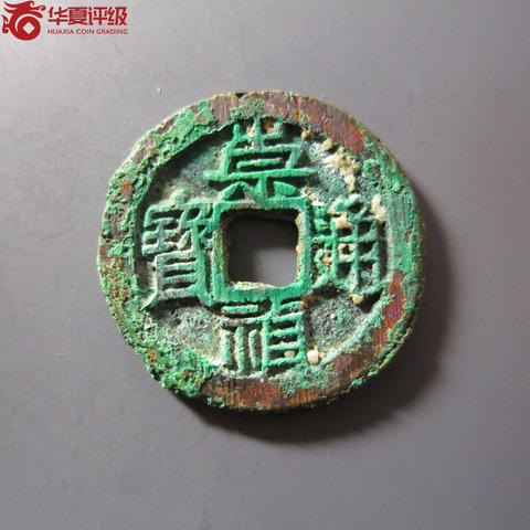 华夏85分绿锈美品崇祯通宝背星