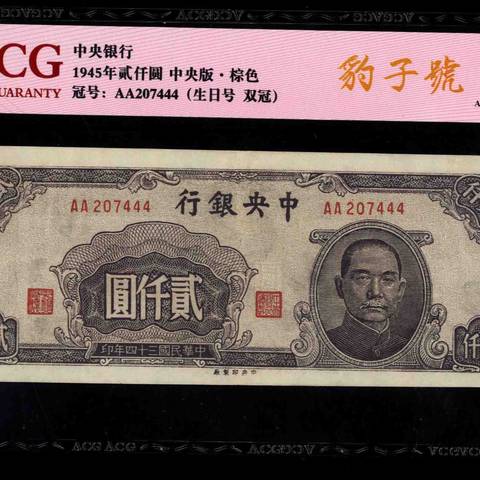 民国34年中央银行贰仟圆 中央厂