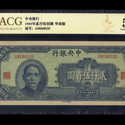 民国34年中央银行贰仟伍佰圆 华南版