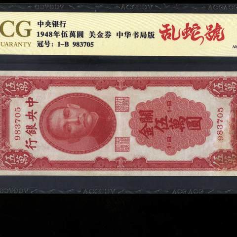 民国37年中央银行关金伍萬圆 书局版