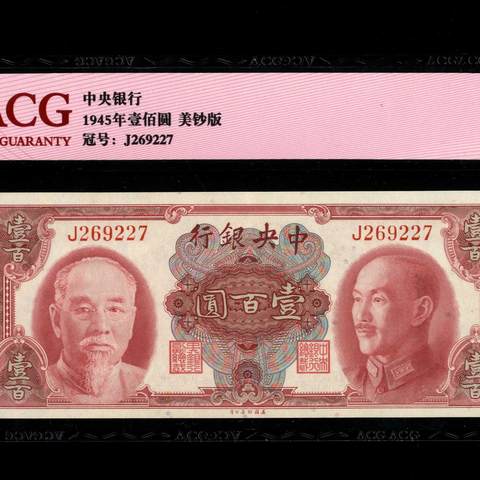 1945年中央银行壹佰圆 美钞版 双头像