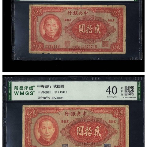 民国30年 中央银行美商版贰拾圆 一组两枚