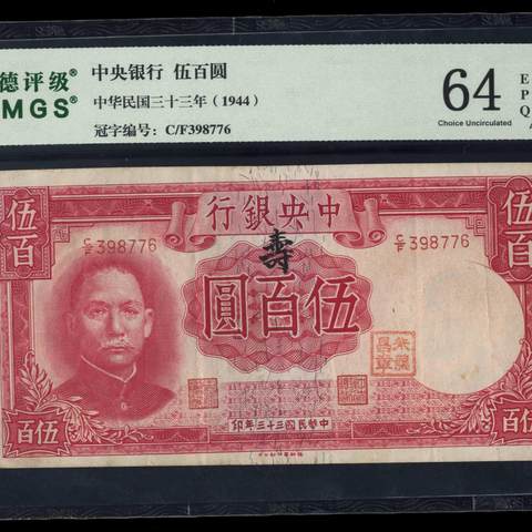 民国33年中央银行伍佰圆 德纳罗版