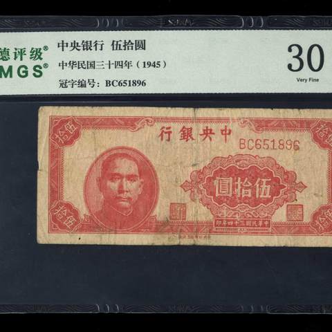 民国34年中央银行伍拾圆 中央上海厂