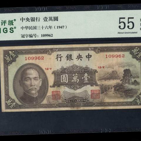 民国36年中央银行壹萬圆 书局版 小山水