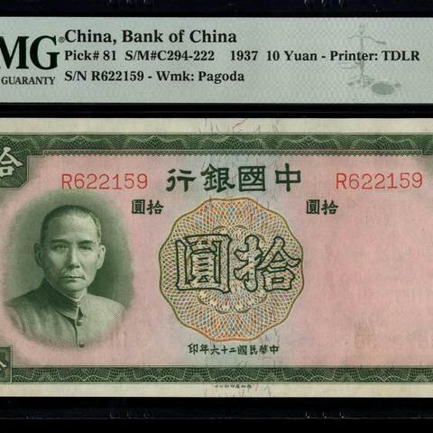 民国26年中国银行拾圆 德纳罗版