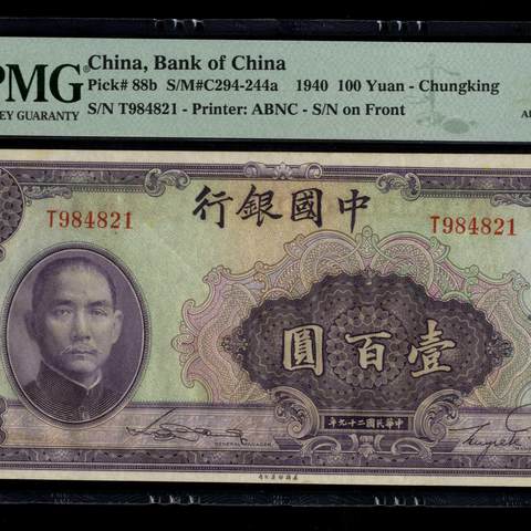 民国29年中国银行壹佰圆 重庆地名 美钞版