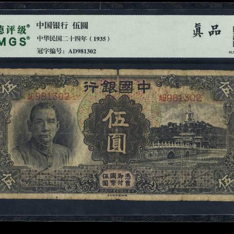 民国24年中国银行伍圆 德纳罗版