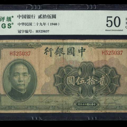 民国29年中国银行贰拾伍圆 美钞版