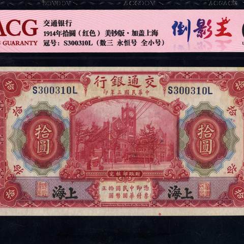 民国3年交通银行拾圆 黑上海地名