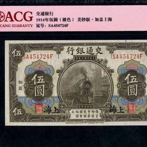 民国3年交通银行伍圆 上海地名