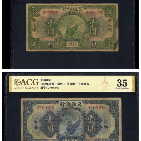 民国16年 交通银行壹圆 一组两枚 爱藏