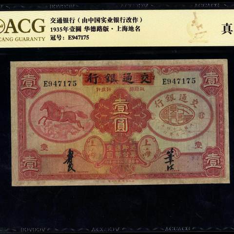民国24四年中国实业银行改交通银行壹圆