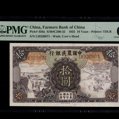 民国24年中国农民银行拾圆 德纳罗版