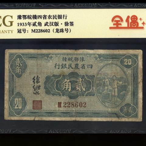 民国22年豫鄂皖赣四省农民银行贰角