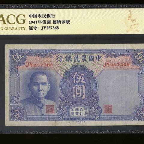 民国30年中国农民银行伍圆 德纳罗版