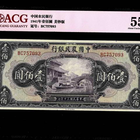 民国30年中国农民银行壹佰圆 美钞版