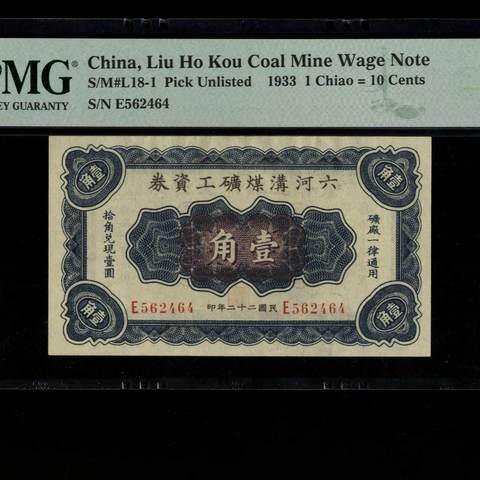 民国22年六河沟煤矿工资券壹角