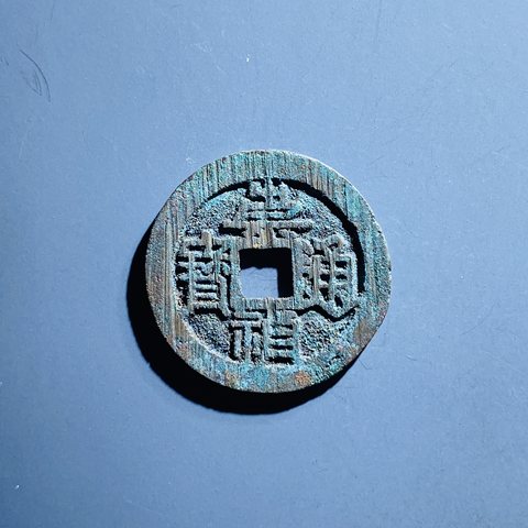 华夏86分绿锈极美崇宁通宝宽字细缘