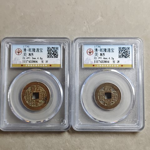 乾隆通宝宝浙和宝源公博评级一组2枚