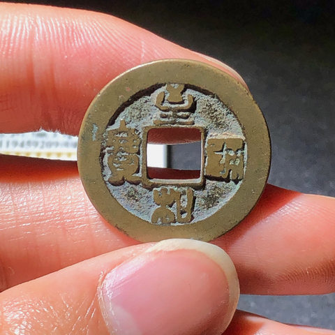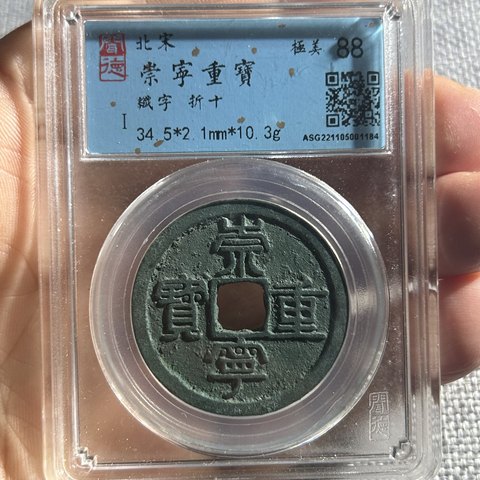 古钱北宋崇宁重宝铜钱式纤字寄郭狭穿