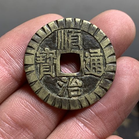 清顺治通宝宝泉捞刻花