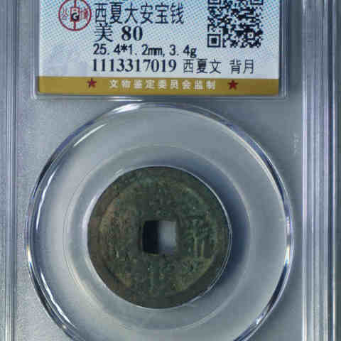 西夏大安宝钱西夏文背月