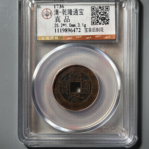 【公博真品】25+乾隆通宝宝泉刻花